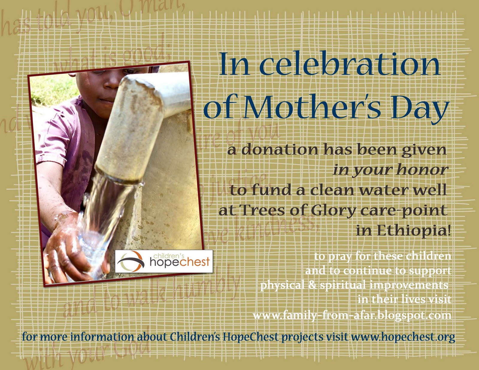 Clean water is a tender subject for our family, especially since both our boys were born in parts of the world where clean water often is nothing more than an empty water bottle tossed along a road-side...a reminder that it's available, but not accessible. It's easy, in the comfort of America, to forget the health (and even life) that dirty water claims every day!! Not to mention the care-givers at Trees of Glory--people with a passion for the children in their community...people that God has set apart to serve the children in their community...yet, often, most of their precious daylight hours are required to fetch water. I cannot imagine how frustrating it must be to want so much more for these children!!